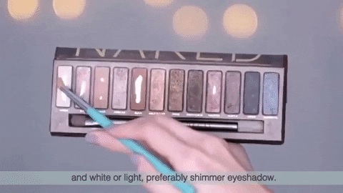 Fill in the gap with a puffy brush and shimmer eyeshadow for a smizing good look.